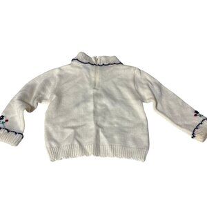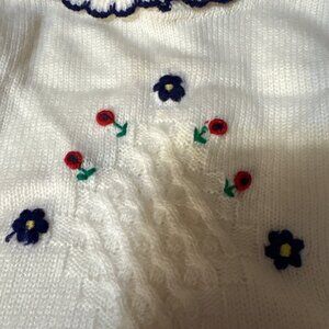 Vintage Baby Girl White Knit Sweater With Floral Embroidery & Scalloped Edging S