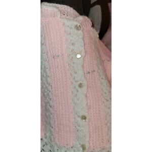 Vintage Baby Hand Knit Sweater Pink Rose Motif Soft New Buttons Layette