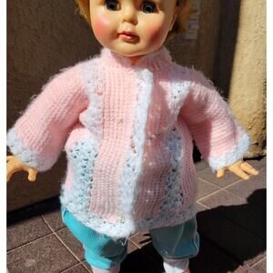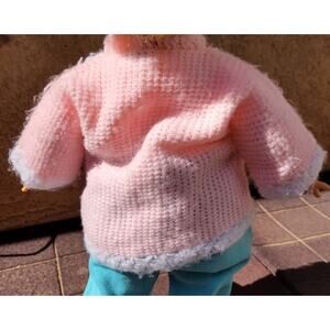 Good preowned condition. Doll size is 3-6 mo so sweater looks big on her.