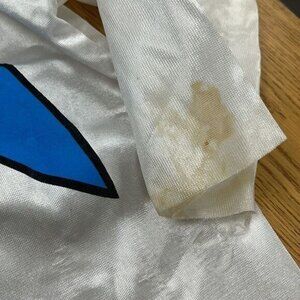 Crack on mask and stain on sleeve. Armpit to armpit 17", top - shoulder to hem 19", inseam on pants 18.5".