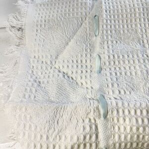 Vintage Baby Kisses Acrylic Blanket White Blue Ribbon Waffle Weave Fringe