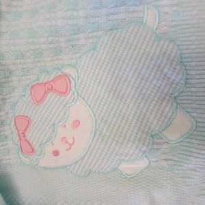 A cute Sheep/ lamb check design with 2 pink bows like applique