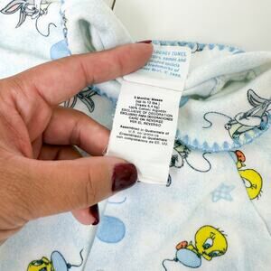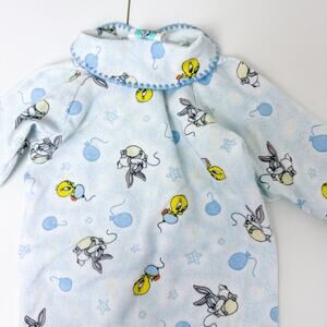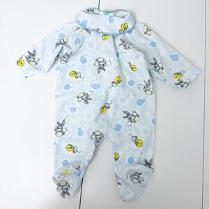 Vintage Baby Looney Tunes Tweety Bugs Bunny Footed Bodysuit Blue - 0-3 Months