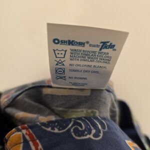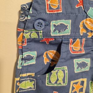 Vintage Deadstock Oshkosh B'Gosh Baby Overalls. Ocean sea life design. Blue lightweight fabric. Adjustable straps. Snap shorts.