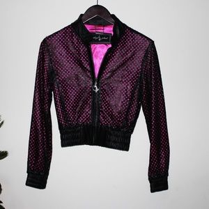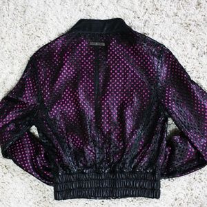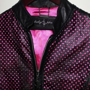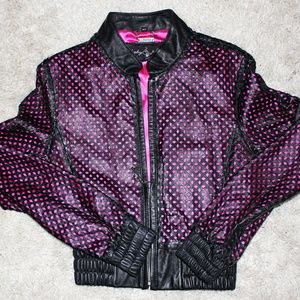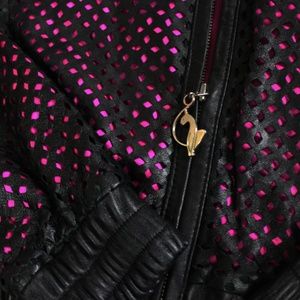 Style: Bomber Jacket, Black Netted Leather, Hot Pink Lining, Full Zip