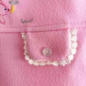 Vintage Baby Pink Dress Sz 12mo Lace Peter Pan Collar Embroidered Animal Mid Mod