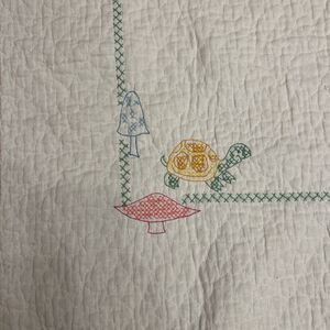 Vintage Baby Quilt Blanket Handmade Embroidered Chip & Dale Store Nuts Mushrooms