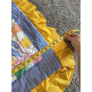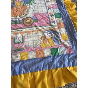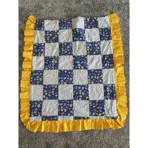 Precious handmade quilt for baby bed with ruffle. In great condition but does have a stain noted to the underside of the ruffle part. This could possibly come out with treatment. Please see pictures and ask any questions prior to buying. Thanks for looking!