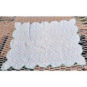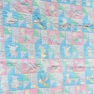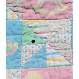 Vintage Baby Quilt - Handmade Crib Blanket Vintage Fabric Pastel Animals and Floral Motif