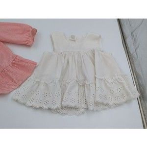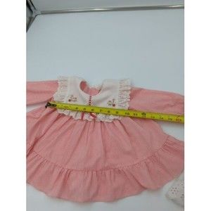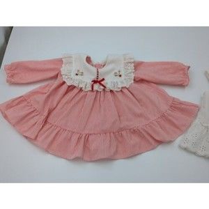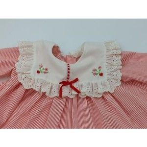 Vintage Baby Togs Girls 12 Month Candy Striped Frilly‎ Lace Bib Dress Bow Party