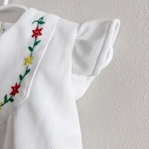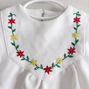 Vintage Baby White Dress Sz 18-24 mo Embroidered Ruffle Sleeves Tie Back 70s 80s
