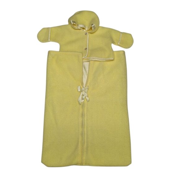 Vintage Baby Yellow Hooded Coat & Sleeping Bag Combo Satin Trim Buttons