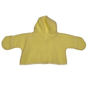 Cozy baby fashion meets vintage vibes. This yellow hooded coat and sleeping bag duo screams cute and cuddly, with satin trims adding flair.