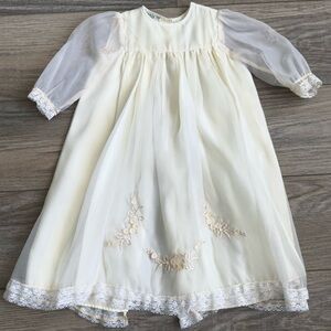 Vintage Baby/Child Baptism Christening Gown Sheer Organza Embroidery W/Shawl