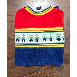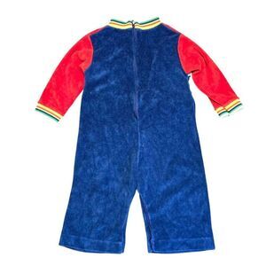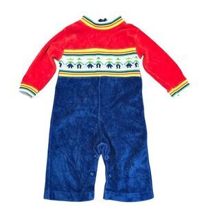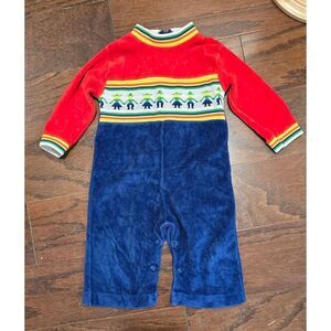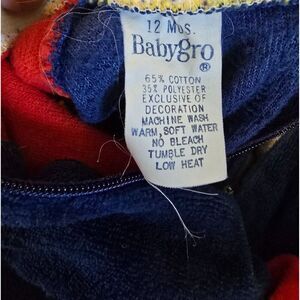 Vintage BabyGro 12M Red & Blue Velour Romper With Rainbow Stripes & Dutch People