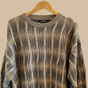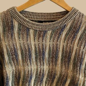 Vintage Bachrach Coogi Style Knit Textured Print Crewneck Sweater.
