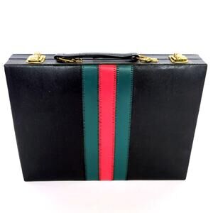Vintage Backgammon Board Game Faux Leather Case Black Red Green Complete