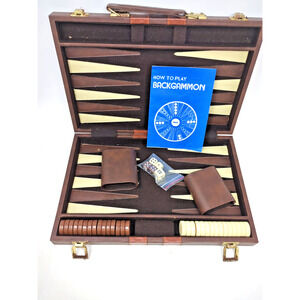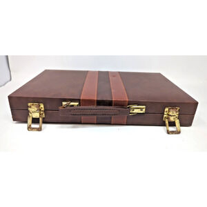 Vintage Backgammon Game Faux Leather Case Small Brown and Tan complete dice