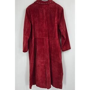 Vintage Bagatelle Studded Suede Trench Coat – Deep Red Leather – Fits L/XL or 1X
