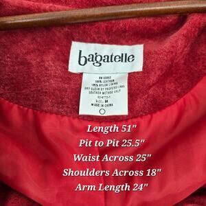 Bring on the luxe western drama. This genuine suede leather trench from Bagatelle turns heads with its rich, deep red hue and studded lapels that add just the right touch of vintage glam. Fully lined, mid-weight, and beautifully structured — this coat was made for statement seasons.