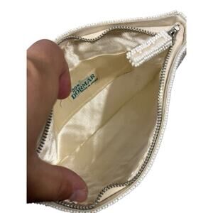 Vintage Bags By Dormar Japan Cream Floral Beaded Zipper Pouch Evening