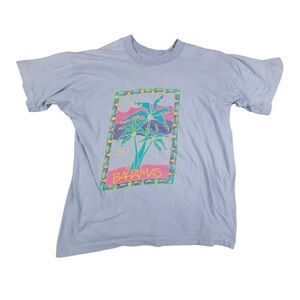 Vintage Bahamas T Shirt Mens Size Medium 80s Tropical Travel Palm Trees
