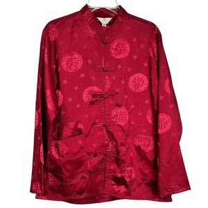 Vintage Baishine Chinese Pajama Set Womens Red Asian Loungewear L (3035)