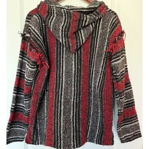 Vintage Baja Hoodie Gold Coast Sunwear Red Black Gray Woven M 🧶🌈