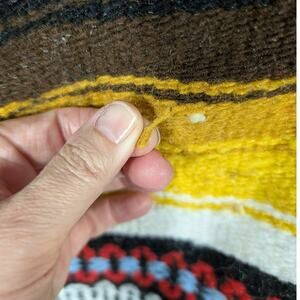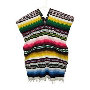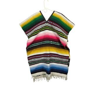 Vintage Mexican Poncho Sweater Mens Medium Multicolor Woven Baja Pullover Boho 90s