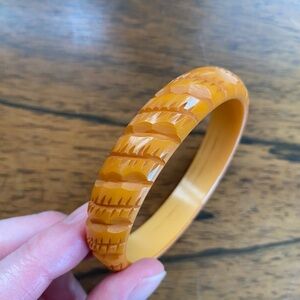 Vintage Bakelite Amber Carved Bangle Bracelet