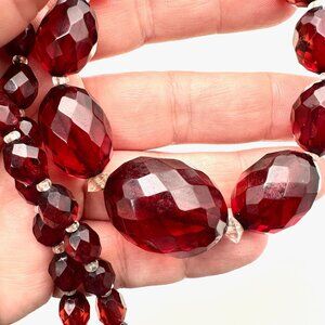 This stunning vintage Bakelite cherry amber bead necklace and earrings set offers timeless elegance. Weighing 58 grams, the 24-inch necklace is perfect for enhancing any outfit with a touch of vintage charm. Ideal for collectors and fashion enthusiasts alike.