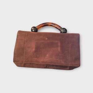 Vintage Bakelite Tortoise Handle Brown Suede Handbag Clutch Purse Evening Bag