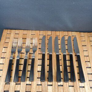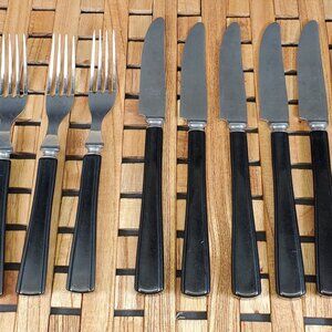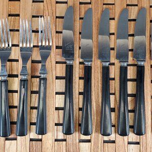 Vintage Bakelite-Handled Flatware Set – Elegant MCM Stainless Steel Black Handle