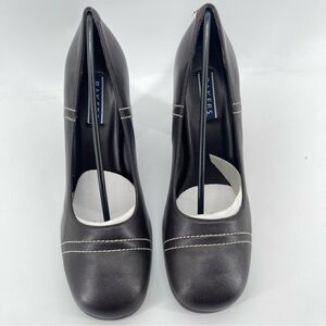 Tags: Prada, leather pumps, vintage pumps, vintage heels, leather heels, brown heels, block heels, chunky heels, fall fashion, office, career, going out, evening, shoes, heels, pumps, leather, vintage, 80s, 90s, boho, designer, Y2K