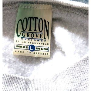 Get this vintage, Patriotic sweater, Cotton Grove brand, Size L, graphic print of bald eagle and stars and stripes flag, is in excellent condition, just has a small green staian in the back of the neck, Men’s or unisex.