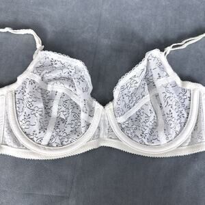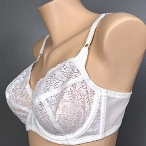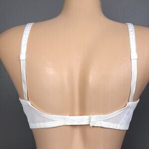 Listed is a vintage Bali Flatterlace 3 part unlined cup bra, white, semi-sheer. Style 3212. Adjustable straps. Back closure. Made in the USA, ILGWU Union made.