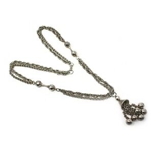 Vintage Ball Tassel Necklace Silver Metal Multi Chain Faceted Beads 26" -Hey Viv