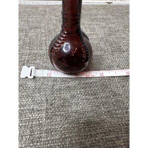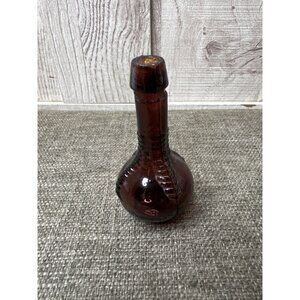 This vintage brown glass bottle vase offers a rustic charm suitable for decorative displays. Its unique shape and color make it a collectible piece.