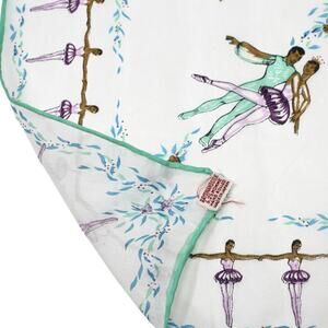 * Design: The scarf shows ballet dancers in various poses with a floral center.