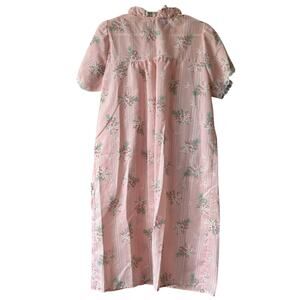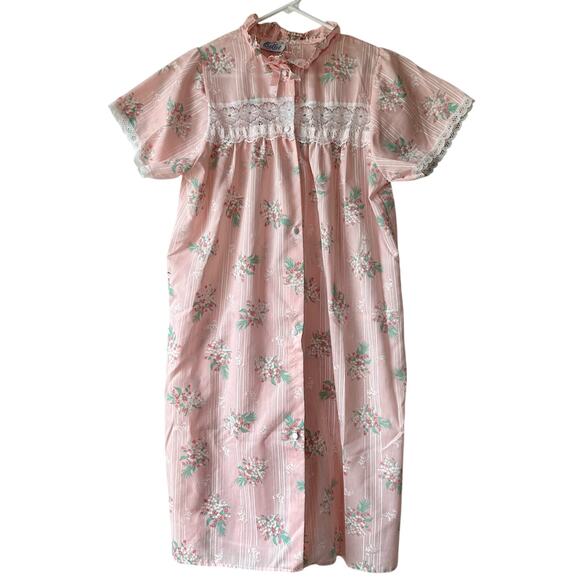 Vintage Ballet New York Pink Floral Nightgown Lace Yoke Short Sleeve Cottagecore