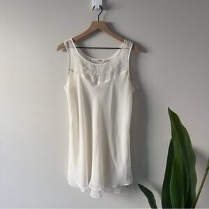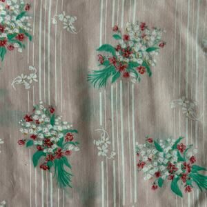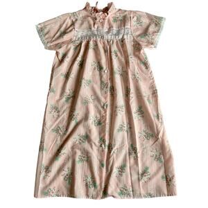 Vintage Ballet New York pink floral nightgown featuring a delicate white lace yoke, soft gathered empire waist, and short flutter sleeves with lace trim. Lightweight and breathable with an easy, relaxed silhouette that drapes beautifully.
