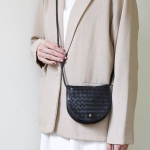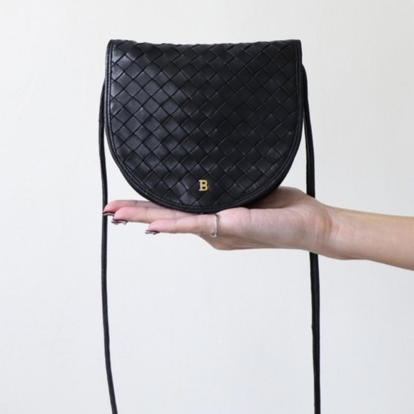 Vintage Bally Lambskin Mini Pochette Woven Black Shoulder Bag