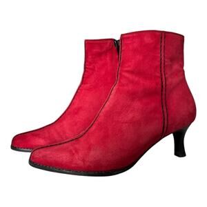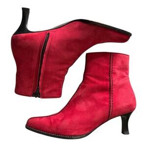 Vintage Bally Red Suede Stitch Detail Ankle Boots 5M Made in Italy Kitten Heel