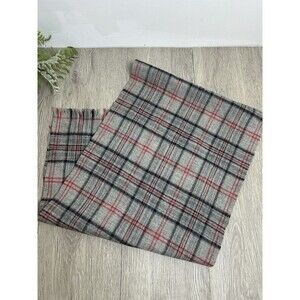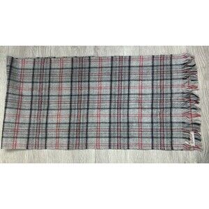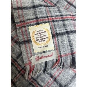 Vintage Balmoral Gray Red Black Tartan Scarf 100% Zephyr Wool 12x48