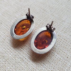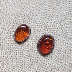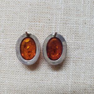 Vintage Baltic Amber and Sterling Oval Post Earrings
