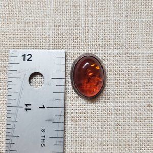 Beautiful sterling and baltic amber cabochon post earrings. The amber is a lovely deep shade with inclusions that catch the light. Good vintage condition; patina consistent with age.