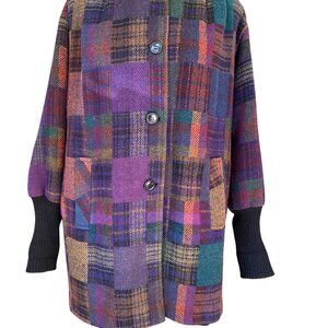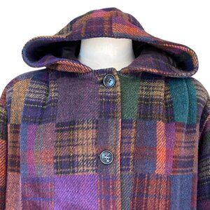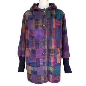 Vintage Bambi Fashions Patchwork Plaid Coat Hooded Hippie Cottagecore Jewel-L