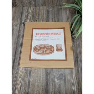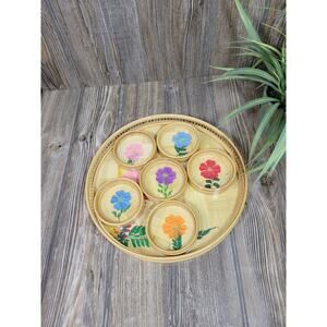 Vintage Bamboo Coaster Tray Set, Pressed Floral, NIB