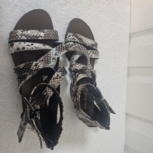 Vintage Bamboo Faux Alligator Skin, Crisscross,Zip up Sandals with 2 buckles.. 6