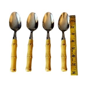 Vintage Bamboo Handled Spoons Set of 7 Stainless Steele